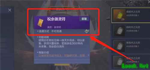2、然后来到下图位置,使用祝余御灵符进行祝余,然后使用元灵进行蕴养。