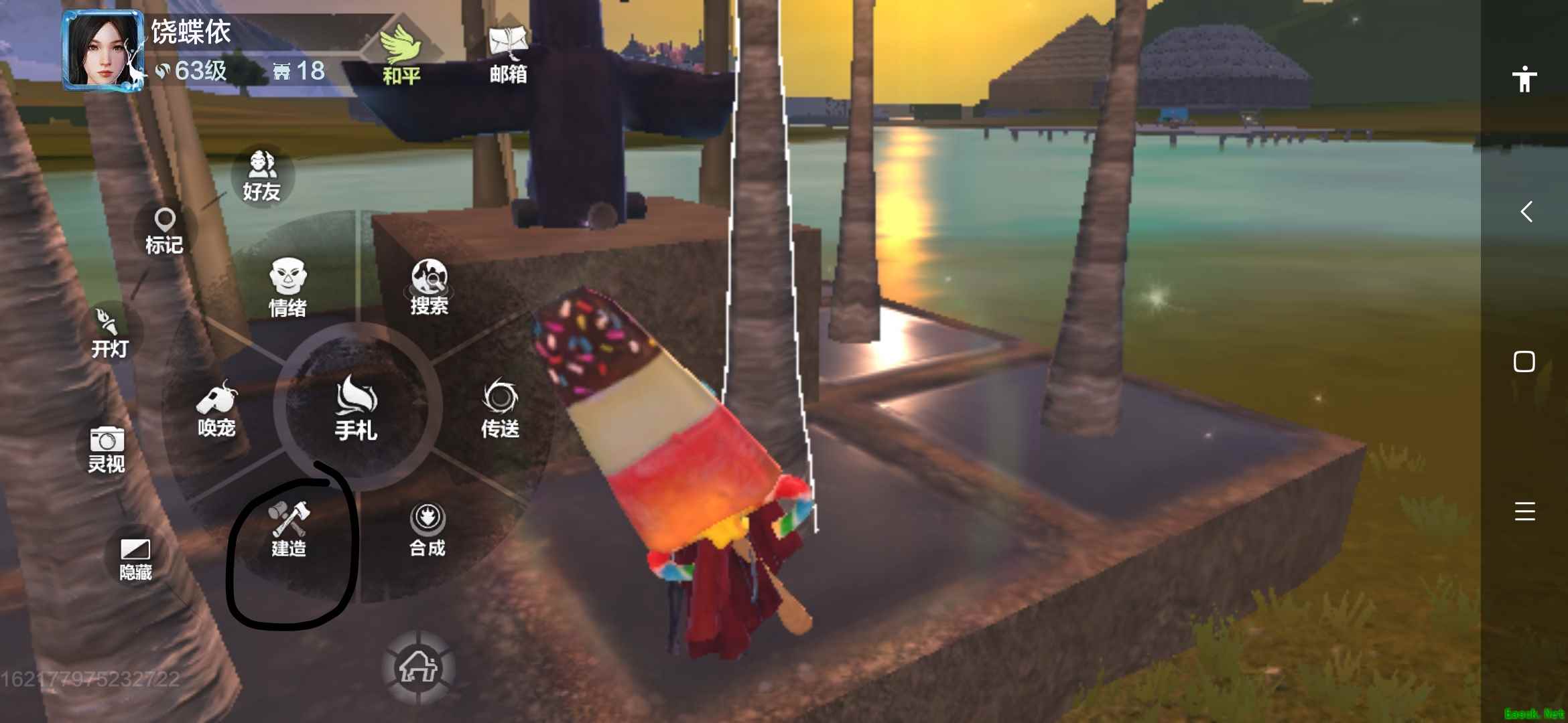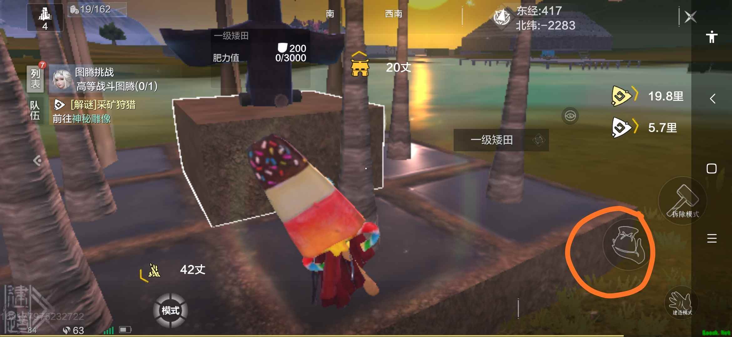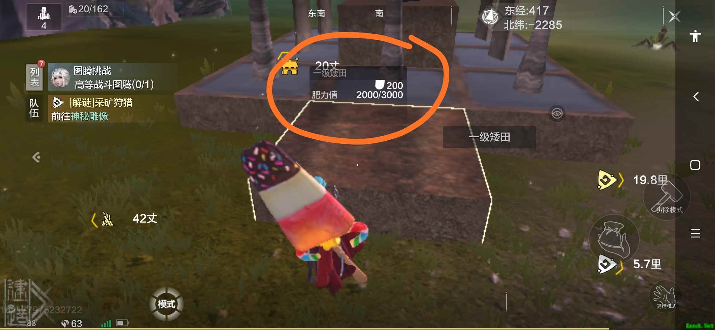 农田放置: 1、其次按照下图画圈的步骤一步一步进行,点击小房子-建造,耕种;