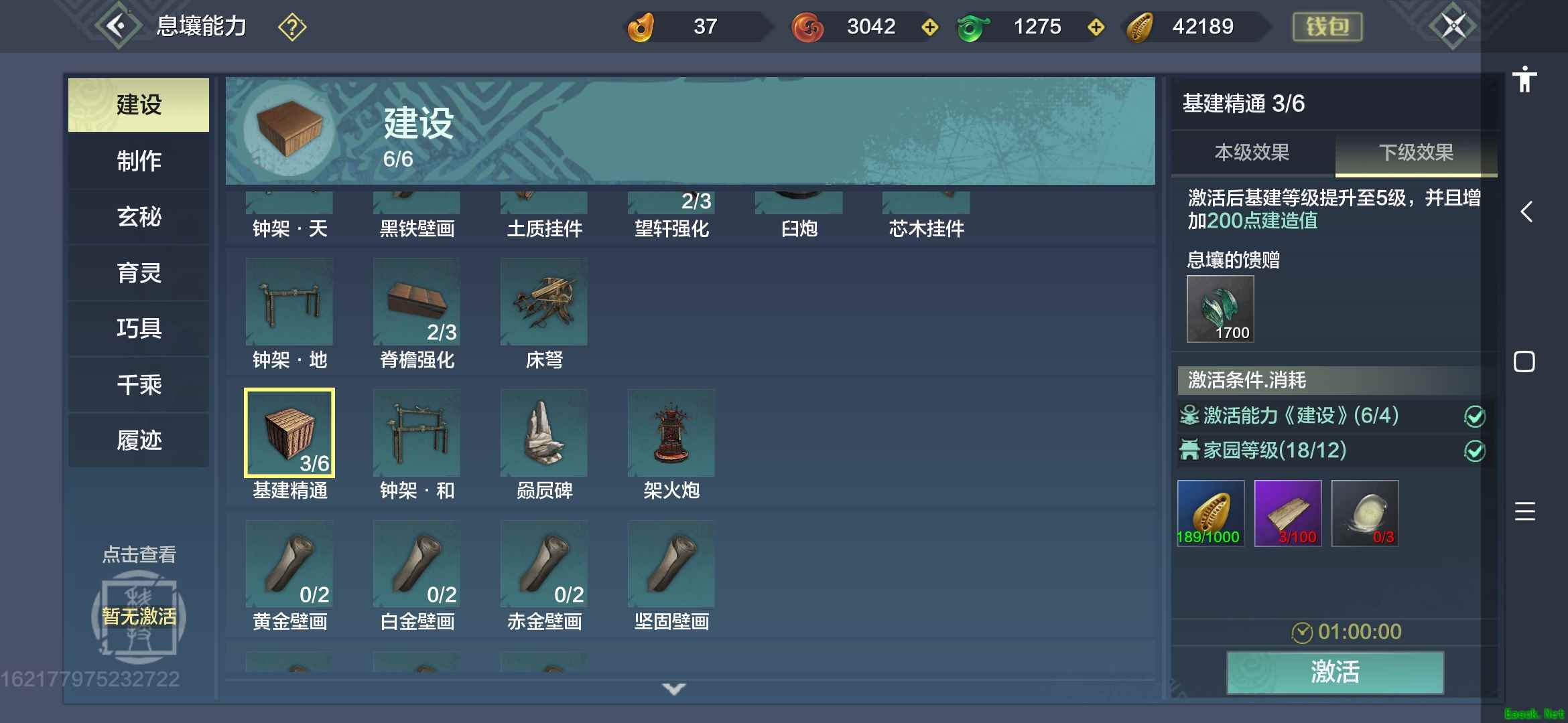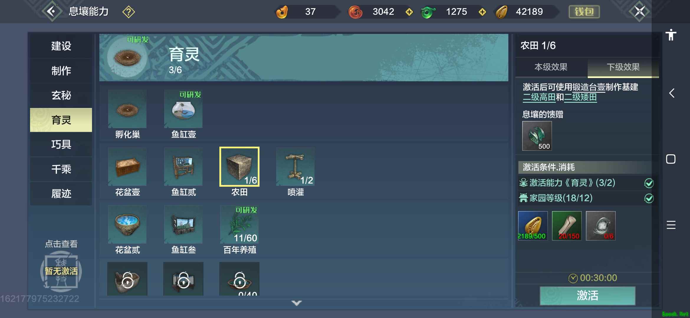 《妄想山海》农田放置详细教程介绍前提准备: 1、要想种田,你必须先升级息壤,准备足够的道具; 2、如下图所示,基建核心、基建精通、农田、喷灌,这些都需要贝币等道具升级。