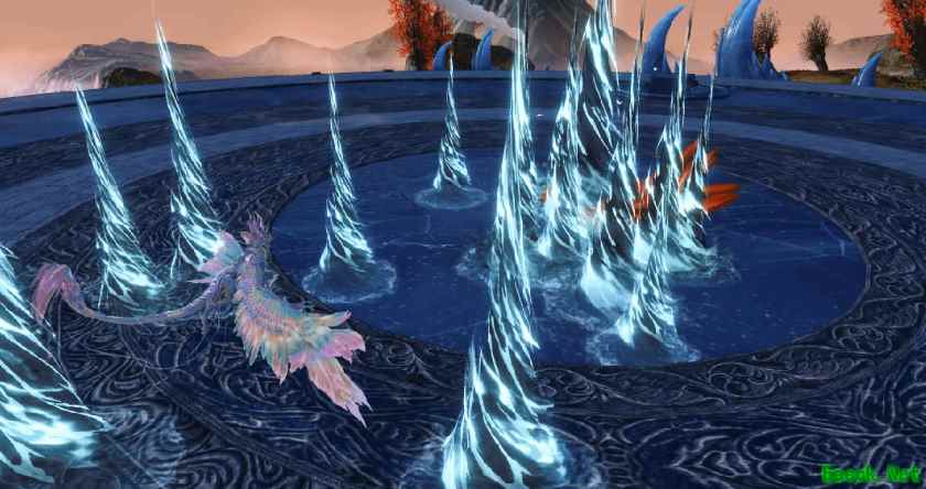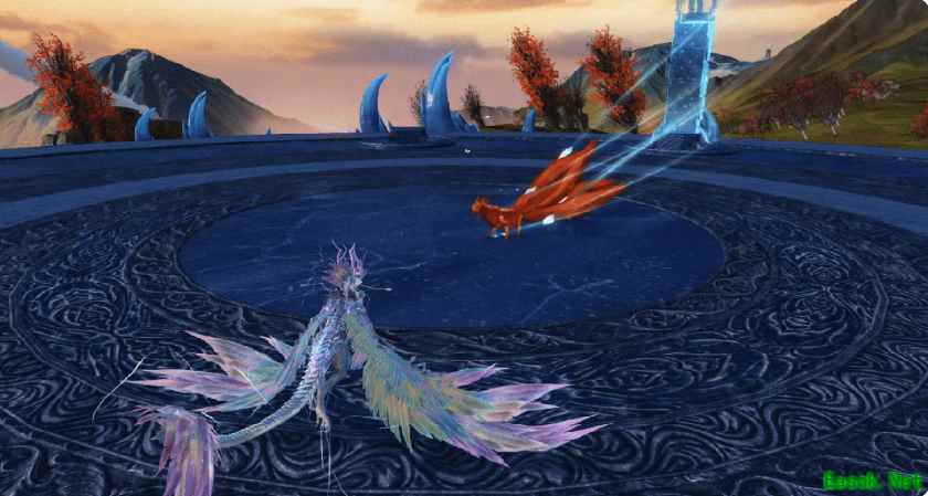 战斗技能使用施法类,有两种攻击手段,其一”翅翻羽接”,亮翅后左右交替,甩出翅膀上的羽毛攻击敌方,并在对应地点发生爆炸,造成近程伤害;第二”顶锋饕雨”,经过短暂蓄力,迅速将头顶羽毛立起来,召唤洪水与风暴混合能量,自己身边和目标聚集出钻出来造成近距离伤害。