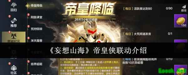 妄想山海帝皇侠联动有什么?这次《妄想山海》迎来了史上最重磅的联动活动——与铠甲勇士的帝皇侠联动!今天小编就带来妄想山海帝皇侠联动介绍。这不仅仅是“史上最精彩的联动”,还加入了满满的躺平元素,让你在畅游大荒的同时,体验前所未有的轻松与乐趣!只要你喜欢帝皇侠,或者想要轻松享受奖励,那就一定不能错过这次的超大盛宴!