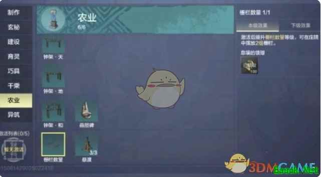 4、冥想舍:可为畜牧动物提供冥想场所,在一段时间后可产出产出并储存灵气。