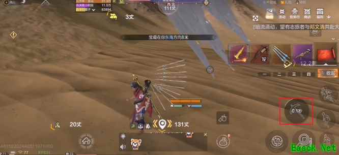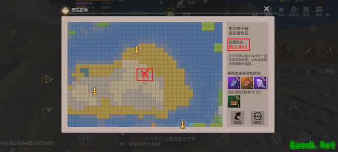 2、达到该位置附近后,开始挖矿可获得线索提示,利用页面上方位置标尺辅助器,来到目的地。