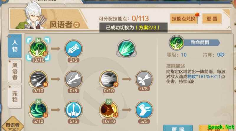 《云上城之歌》射手风语者PK技能加点全攻略满箭雨飓风 后跳5 定身点满,疾跑进阶满 韧性满。 宠物技能冷却满。再有多的技能点就去点宠物里全属性+1
