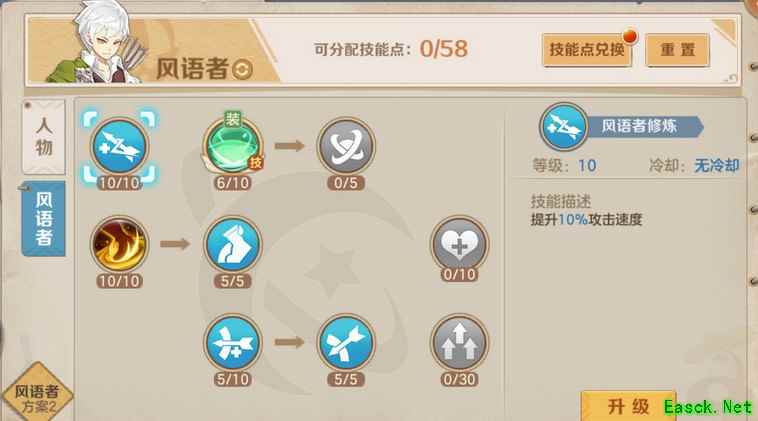 《云上城之歌》风语者三套技能加点方案分享研究了一下,风语的技能,做出了三套方案 第一套也是我自己现在用的这套刷图,适合打寻宝,幻兽,装备副本,思路是小技能点1级,疾跑满,疾跑解控1级,大点满,攻速点满,分裂伤害点满,副本主要是boss难打,小怪好刷,技能群伤适合打小怪,但是boss喜欢移动并且控不住,技能等级再高,打不到也没伤害,普攻躲不了。,同25万战力风语,和我一起开荒10星幻兽,输出比我低几万。