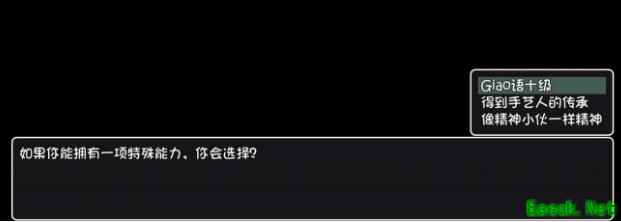 第四个大选项 giao语:选择此技能会有一个技能,50蓝耗,伤害在差不多250左右 手艺人:开局送你几个图纸(宝物雕像戒指) 精神小伙:100法力值