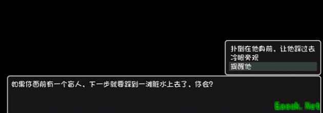 第五个大选项 扑倒:获得被动正道的光(神圣伤害+5%) 冷眼旁观:2点暴击 提醒:2命中,乐于助人