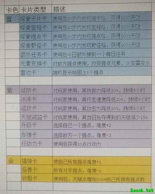 8人局的地图资源据点显得更为密集。(因时间有限,起始点位收集了七个,差一个哈) 可以看到目前地图,3级据点5个,2级据点9个,1级据点19个。 目前据点难度等级上限分别为:1级据点上限10级,2级据点上限60级,3级据点60级。 玩家占领据点数量还是1-3级据点每个等级最多占两个。最高100积分。 每周排名结算时间为周日晚10点,根据排名获得相应段位积分。 1-2名+20积分,3-4名+10积分,5名+0,6-8名-8积分。 玩法解析 和原来的四人局玩法不同,现在的天赋点技能不能使据点强化和免战。更多的是强化角色在幻境玩法中的效果。(目前版本部分天赋技还有瑕疵,少部分技能可能看不出效果,等待进一步完善) 现在的幻境玩法更拼玩家的综合战力和策略。特别是卡片的留存。 卡片当前版本所有种类如下图: