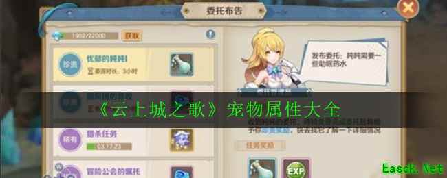 《云上城之歌》游戏中很多宠物属性新手玩家搞不清楚,而且玩家需要根据宠物的属性进行搭配,不同的宠物拥有不同的属性,小伙伴们想不想知道各宠物的属性是怎么样的呢?接下来小编为大家带来《云上城之歌》宠物属性大全,一起来看看吧。