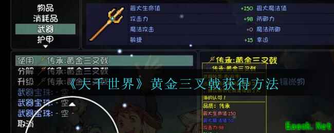 《大千世界》是一款看起来就会非常的鬼畜的手机生存冒险类的手游,游戏中黄金三叉戟怎么获得呢?下面是手游网小编给大家带来的《大千世界》手游黄金三叉戟获得方法介绍,感兴趣的欢迎围观哦! >>>>小编推荐:《大千世界》礼包兑换码大全 >>>>小编推荐:《大千世界》全人物基因锁解锁方法
