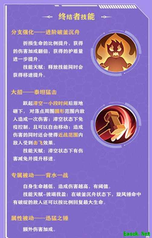 4.增伤——破釜沉舟 献祭技能,战锤献祭当前生命的一定比例,立刻获得[气劲],同时获得一层护盾。 技能天赋:护盾持续期间战锤获得伤害加成,战锤的生命越低,获得的伤害加成就越高,伤害加成有上限。 5.位移解控——英勇冲撞 解控技能,战锤解除控制效果并往前冲锋,对前方矩形范围敌人造成伤害,冲锋过程中免疫控制且会将击中敌人推至冲锋终点。 技能天赋:到达冲锋目标点之后将会上撩一锤对附近的敌人再次造成伤害,并将此前冲撞到的所有目标挑飞至自己身后。 6.防御——天威压制 对自身周围圆形范围内敌人造成一次伤害,并立刻获得[气劲]。 技能天赋:造成伤害的同时使得被击中者获得减伤和减疗debuff。 以上就是《云上城之歌》战锤玩法攻略的全部内容了,更多手游攻略请关注易采游戏网! 本文内容来源于互联网,如有侵权请联系删除。 |