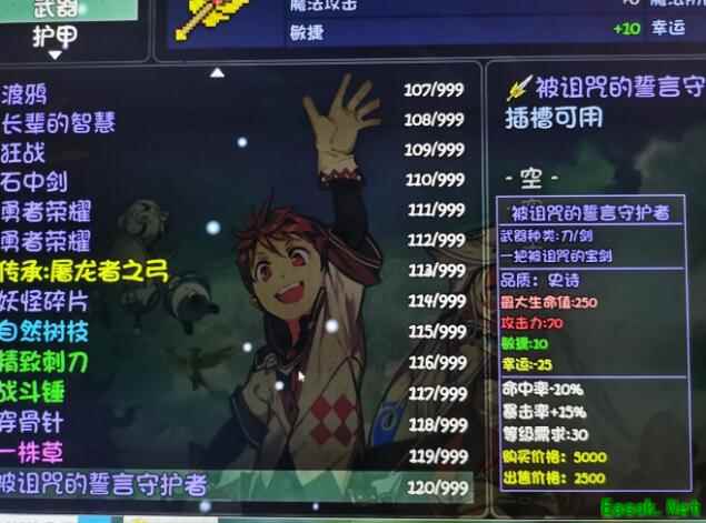 2、选择“我非要碰”,就进入战斗。 这个幽魂的技能和墓地里的一样,物理闪避极高,推荐用奥术波动套装打。 结束后搜尸,得到被诅咒的誓言守护者,并且掉5点善恶值,而且不会计入已完成任务。