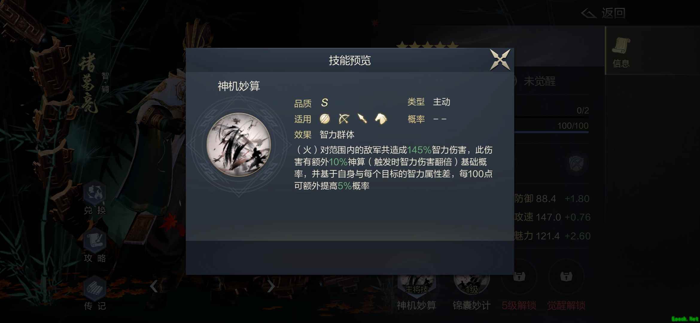 【武将属性与羁绊大全】 《鸿图之下》诸葛亮属性与羁绊大全强度分析 诸葛亮是目前法师队比较公认的核心组件,不论是其高智力下可以暴打武力队的主将技能,还是其增加技能释放几率的被动技能都是极大的输出利器,法师队的核心,不过唯一的问题就是脆皮了。 面板属性