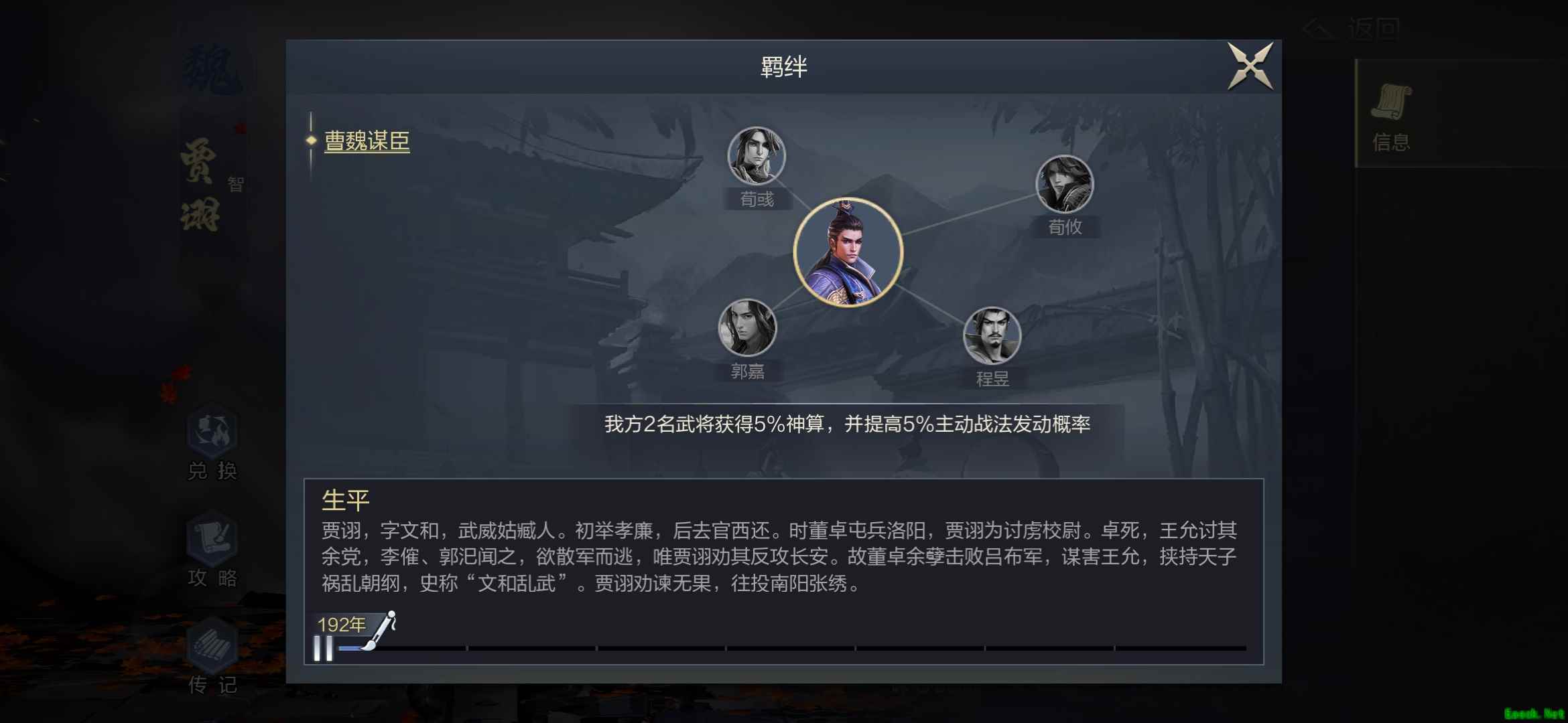 《鸿图之下》贾诩属性与羁绊大全