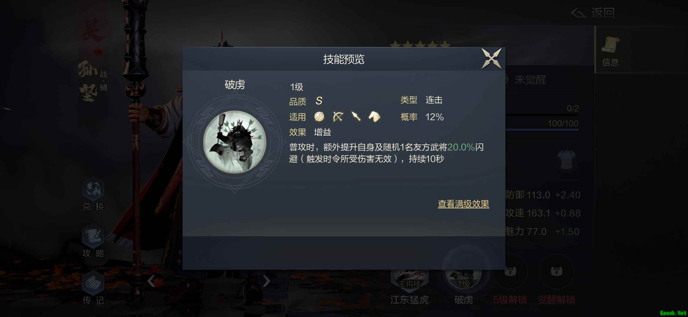【武将属性与羁绊大全】 《鸿图之下》孙坚属性与羁绊大全强度分析 孙坚,三孙中适合主将的肉盾之一,技能也是连击为主,整体技能与羁绊还有闪避。 面板属性