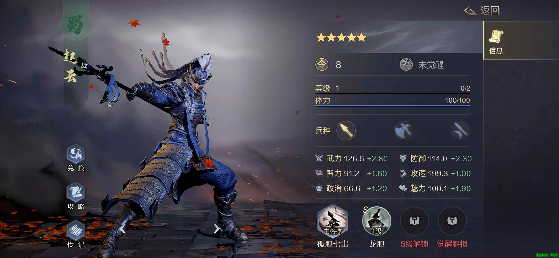 【武将属性与羁绊大全】 《鸿图之下》赵云属性与羁绊大全强度分析 赵云,蜀国菜刀队中的顶级输出之一,和赵云配合黄忠,爆发非常强,而且兑换武技价值也非常高。 面板属性