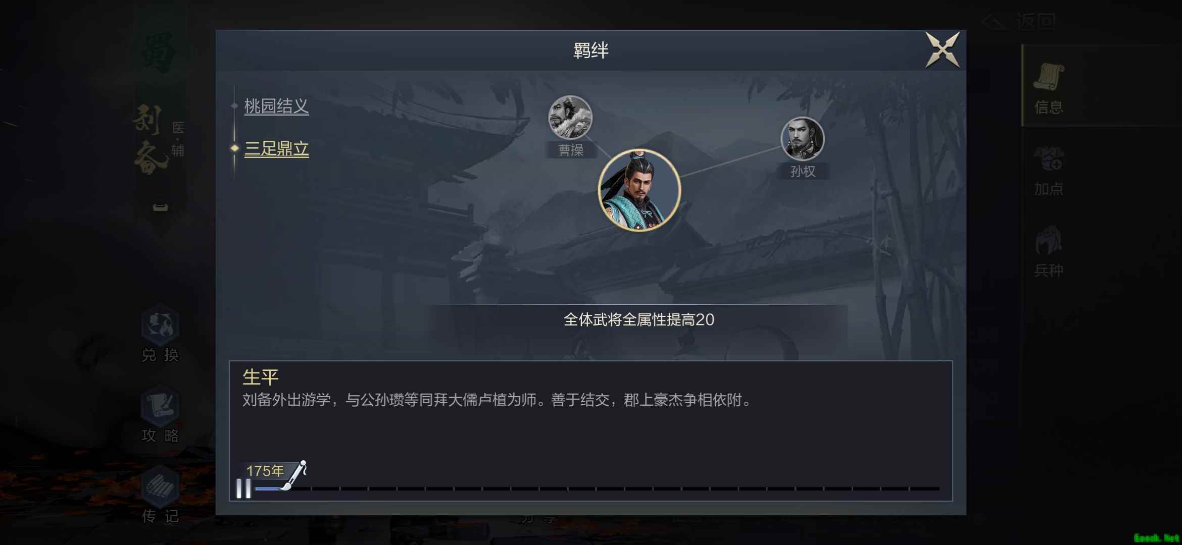 以上就是小编带来的《鸿图之下》刘备属性与羁绊大全的全部内容,更多内容请关注易采游戏网! 本文内容来源于互联网,如有侵权请联系删除。 |