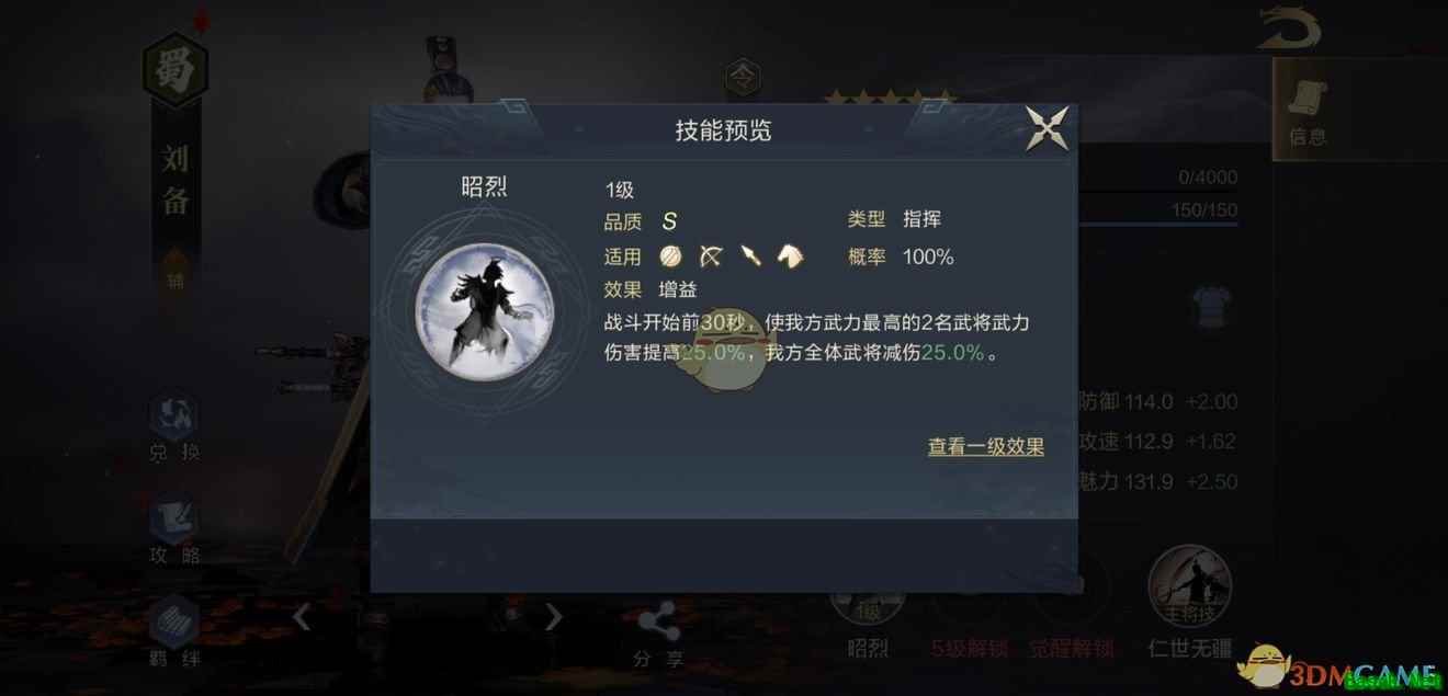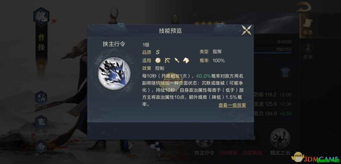 三皇之一,曹操在新的测试中技能得到重做,重做后的曹操终于坐的稳他三皇的位置了,每10秒双目标缴械或者沉默的概率强控,搭配上曹操高额的政治成长,控制效果真的太强了,比如羁绊队“虎卫”就是典型的曹操带两只“狗”,立马变身t0强度,曹操的强就不用多说,他的使用限制也低,可以搭配任意队伍,都可以加强队伍的强度,所以在我心目中曹操可以排上第二核心的位置。 第三名:刘备