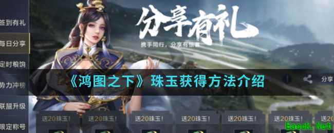 在鸿图之下手游中珠玉怎么得呢?珠玉在游戏中是很重要的存在,很多地方都得用到珠玉,那么该怎么去获取这个珠玉呢?想知道获得方法的小伙伴就跟随小编一起来看看吧。
