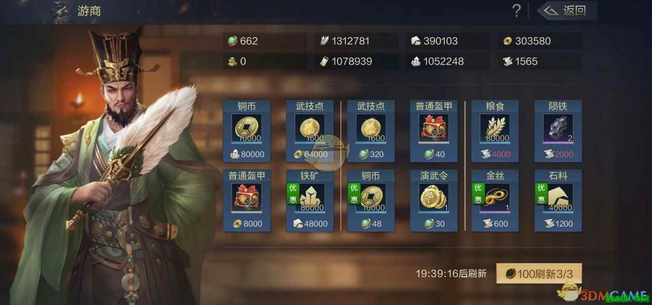 游商内的商品每24小时自然刷新一次,目前游商有三种兑换方法,第一种是资源(包含铜币)兑换资源,第二种是珠玉兑换资源,第三种是战功兑换。 前期游商只会出现资源,武技点,演武令等奖励,等大家名望等级提升至18级,可以解锁装备和育马玩法之后,每日游商还有几率刷新出初级装备和初级马匹。 市场系统