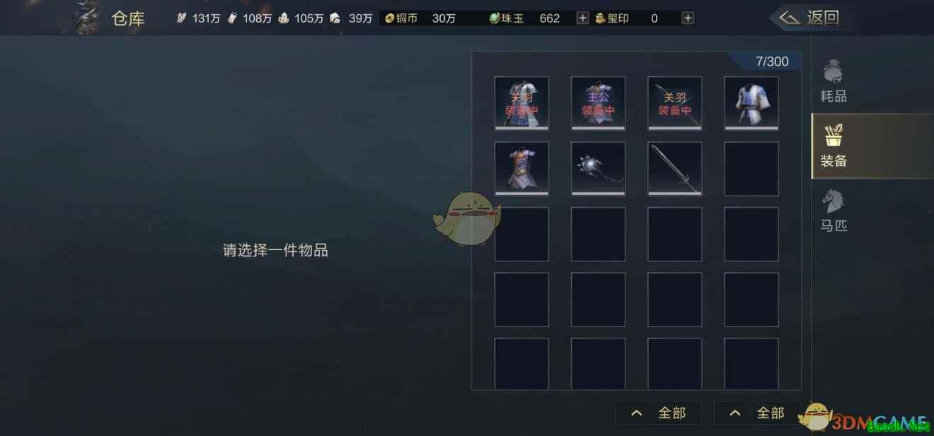 仓库主要用于装各种道具,比如说演练收到的图纸,获得的马匹,武器,装备都可以在仓库中看到。如果你在地图上获得任何道具找不到了,建议先看看仓库。