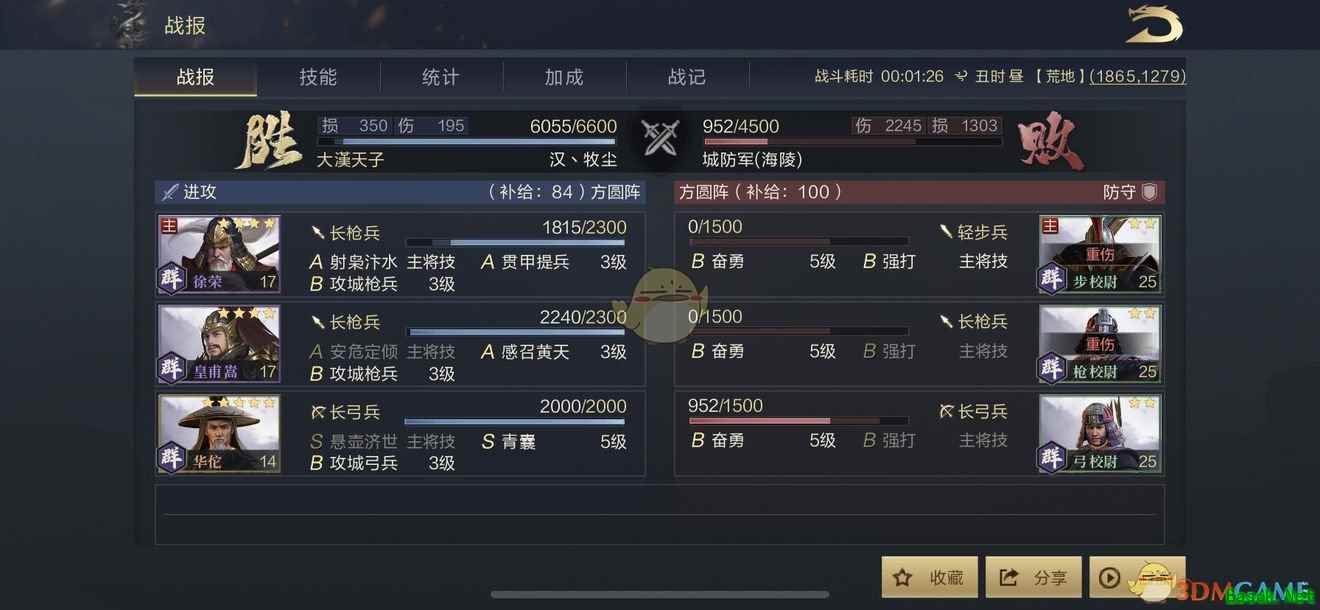 补给:这个东西很重要,关系到打架,打城,开荒,按照距离而定,起始100补给,后期可以升级建筑增加补给,兵力回到要塞或者城池里可以恢复,距离越远攻击力下降越多,所以打城一定要起要塞,不能远射,不然只会打平局,打平局就对拆耐久没有任何贡献; 攻城时间:1小时,时间过后恢复守军; 拆迁队站位:靠右打击,站位236; 拆迁队兵力:按照打一次城防军损失500兵为例子,体力150,可以打10次,那就是会损失5000兵左右,打4500的守军,那我们的兵力就要准备10000以上;