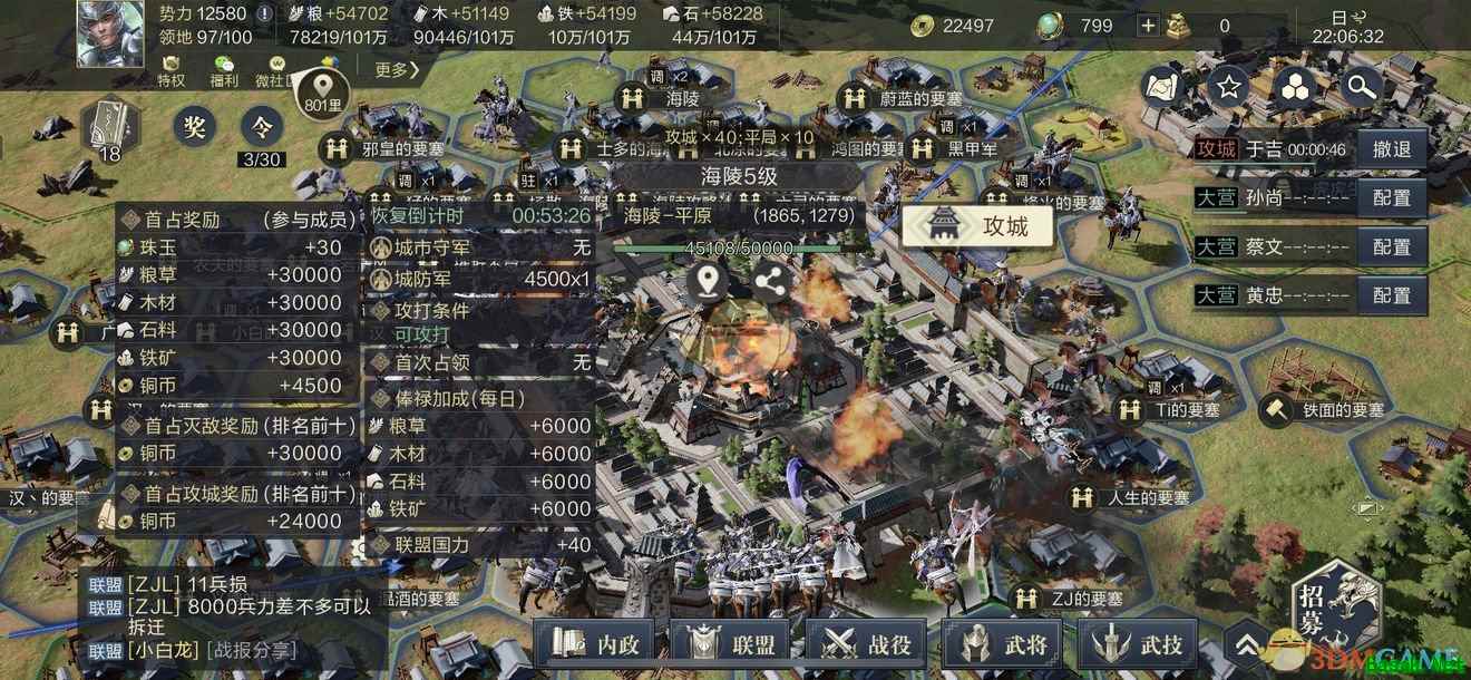 打法:一小时,一对拆迁5分钟打一次,打完10次也要50分钟,期间不能打平,不然很影响拆迁进度,打平直接撤退没必要拖着,按照一队拆迁带一级技能为例子,那就是120固定值+135技能值=255拆迁值,然后在x10次攻击=2550,五级城池有50000耐久,但是城池每秒恢复2点耐久(具体不是很清楚,也有说1秒1点,2秒1点,我们就按照最多的来打比方),我们打完城池需要拆大概56000耐久,大约需要22队拆迁可以打完,但是打城为了保险,还是定为最低25队拆迁队,避免出意外; 总结:打城必须起要塞,不能远射,一旦打平立即撤退,兵力一定要充足。 以上就是小编整理的鸿图之下五级城池打法攻略介绍,想知道更多相关资讯攻略的请关注易采游戏网。 本文内容来源于互联网,如有侵权请联系删除。 |