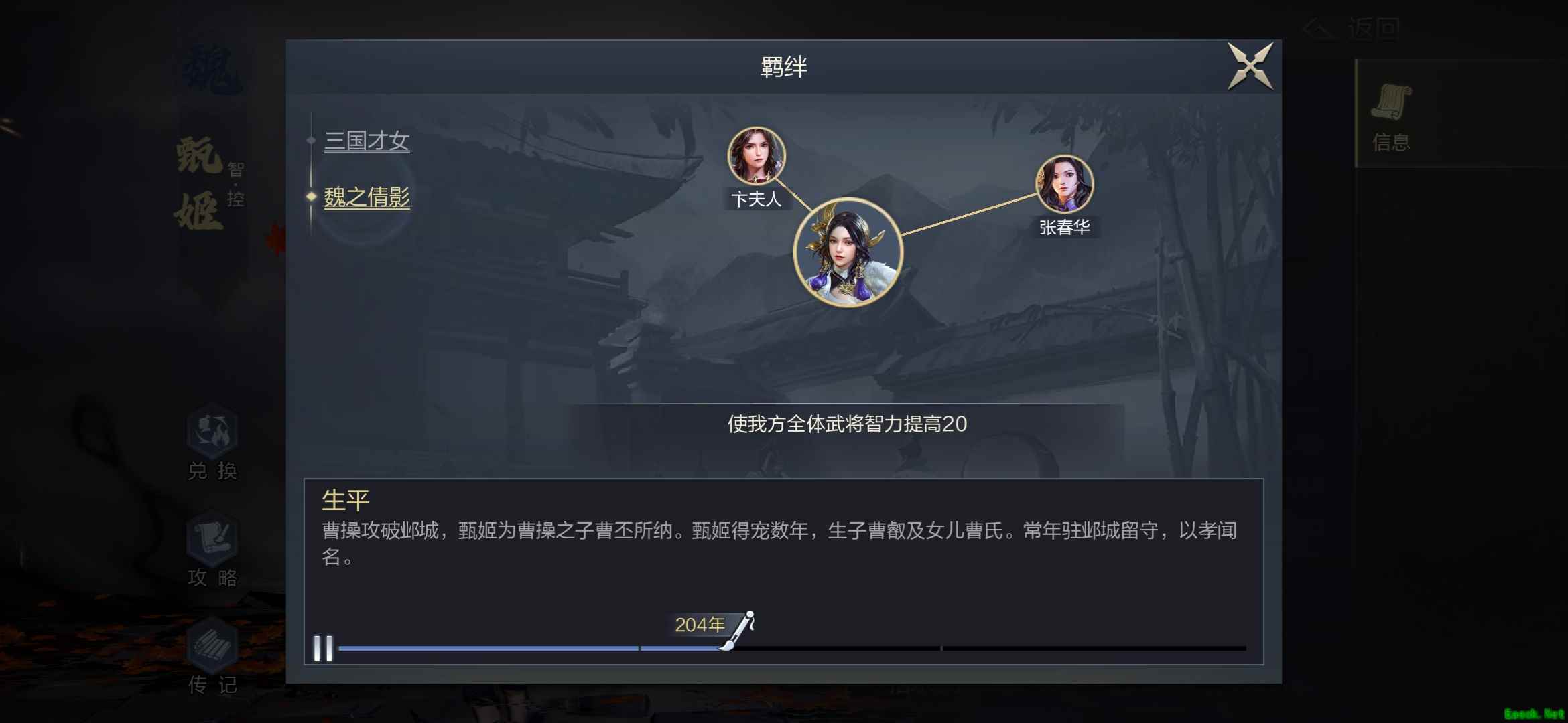 【武将属性与羁绊大全】 《鸿图之下》甄姬属性与羁绊大全强度分析 甄姬,非常不错的debuff辅助,特别是祸起江东,有效的降低男性武将的输出能力。 面板属性
