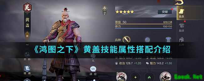在鸿图之下手游中黄盖技能属性怎么样呢?黄盖,字公覆,三国时期孙吴势力下的名将。在三国题材最出名的演义故事中,他扮演忍辱负重的角色,被周瑜鞭打,假装怀恨在心向曹军告密。最终成功让曹军放松警惕,因为偷袭和火计在赤壁之战中败下阵来。这就是民间广为流传的“周瑜打黄盖”故事。那么想知道黄盖技能属性搭配的就跟随小编一起来看看吧。
