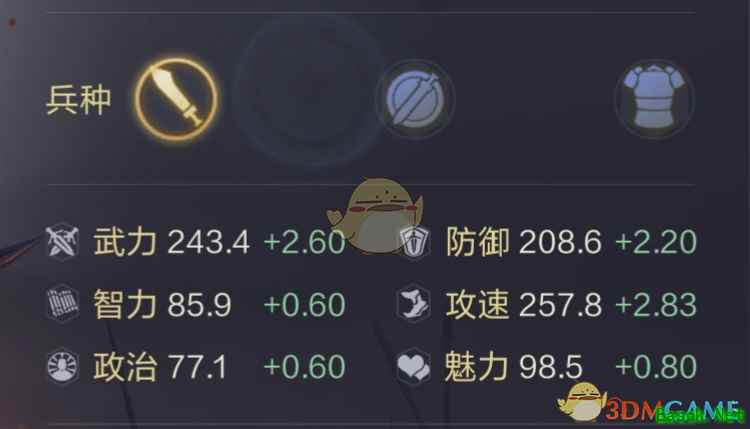 1、典韦在《鸿图之下》中的武将特性为“武”、“迅”,是一名高爆发伤害且高攻速的武将。满级后的典韦,武力达到243.4,攻速达到257.8,且还有的2.6的武力等级成长,攻速更是有惊人的2.83成长。其他属性方面,典韦则表现稍显平庸,综合来看,他是一位主打高伤害和高攻速的进攻武将。 2、典韦的专属兵种是步兵,自带克制枪兵的效果,被骑兵克制。30级能同时解锁“盾甲兵”和“藤甲兵”。“盾甲兵”能减少来自弓兵的伤害,但克制枪兵的效果将会减弱;“藤甲兵”则能减少受到的武力伤害,但畏惧火焰伤害。