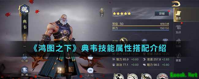 在鸿图之下手游中典韦技能属性怎么样呢?典韦是三国时期魏国的著名将领,史书上记载,其长相貌魁梧,膂力过人,曾单手举起牙门旗,可以看出典韦是一个非常勇猛的武将。那么想知道典韦技能属性搭配的就跟随小编一起来看看吧。