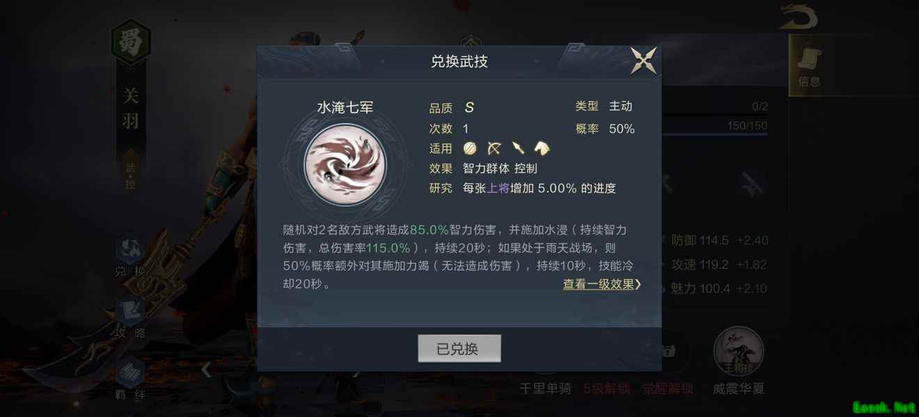 鸿图中关羽的兑换武技被设定为水淹七军。