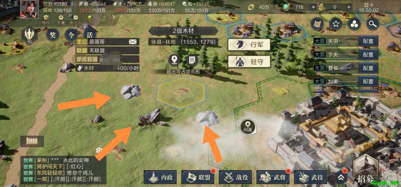 2、飞地不提倡,但是遇到自己主城附近都是其他联盟的人,而且自己经常受到攻击这种情况,可以和同联盟的玩家商量,在他附近占领一片资源点,攻占下来后直接把城迁过去。 3、同联盟玩家俘虏的领地,除了不能直接攻占俘虏的领地之外,俘虏所占的资源点附近1格内的任何地格,都可以被同联盟的玩家占领。