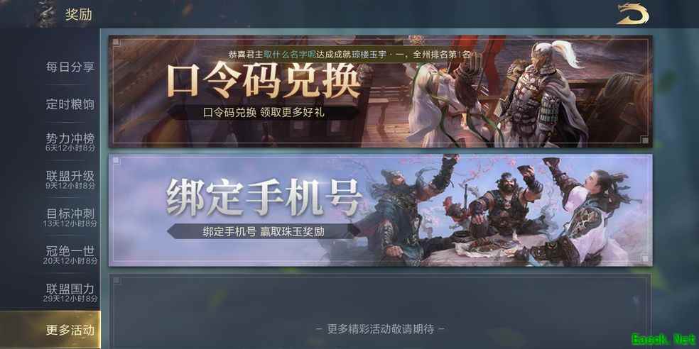 《鸿图之下》赚钱攻略游戏中需要的开销是非常大的,例如升级、加强等都是需要用到钱的。 那么要怎么样才能快速挣钱呢? 一、成就任务 任务奖励又分为两种,分别是资源材料和元宝,小伙伴们一定要先把元宝奖励的任务完成。 二、主线任务 完成主线任务既可以获得非常多的经验值和材料道具的奖励,还可以获取不定额的元宝奖励。 三、关卡挑战 还可以通过游戏中的关卡挑战获取钱哦。虽然数量没有很多,但是积少成多也是不菲的一笔收入,日常花销还是足够的。