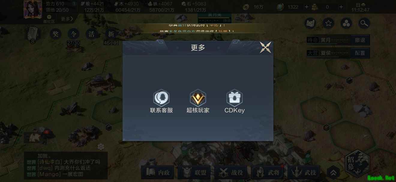 《鸿图之下》礼包兑换码大全GCGGL35Z76CA GCGGN514C76T GCGG0ME5P0E7 GCGG1P627S0Y GCGGT4MCV46G GCGGAIEW8PL6 GCGGANM24767 GCGG9N74ISJV GCGGYYI6P131 GCGGJ43C21DK GCGG41OS0DKT GCGGQ8I78NL3 GCGGJK53R08B 兑换码使用方法1、登陆游戏,进入游戏主界面,点击左上角的头像。 2、进入进入微社区页面,点击更多选项。 3、选择CDKey,在输入框中输入正确的兑换码就可以了。