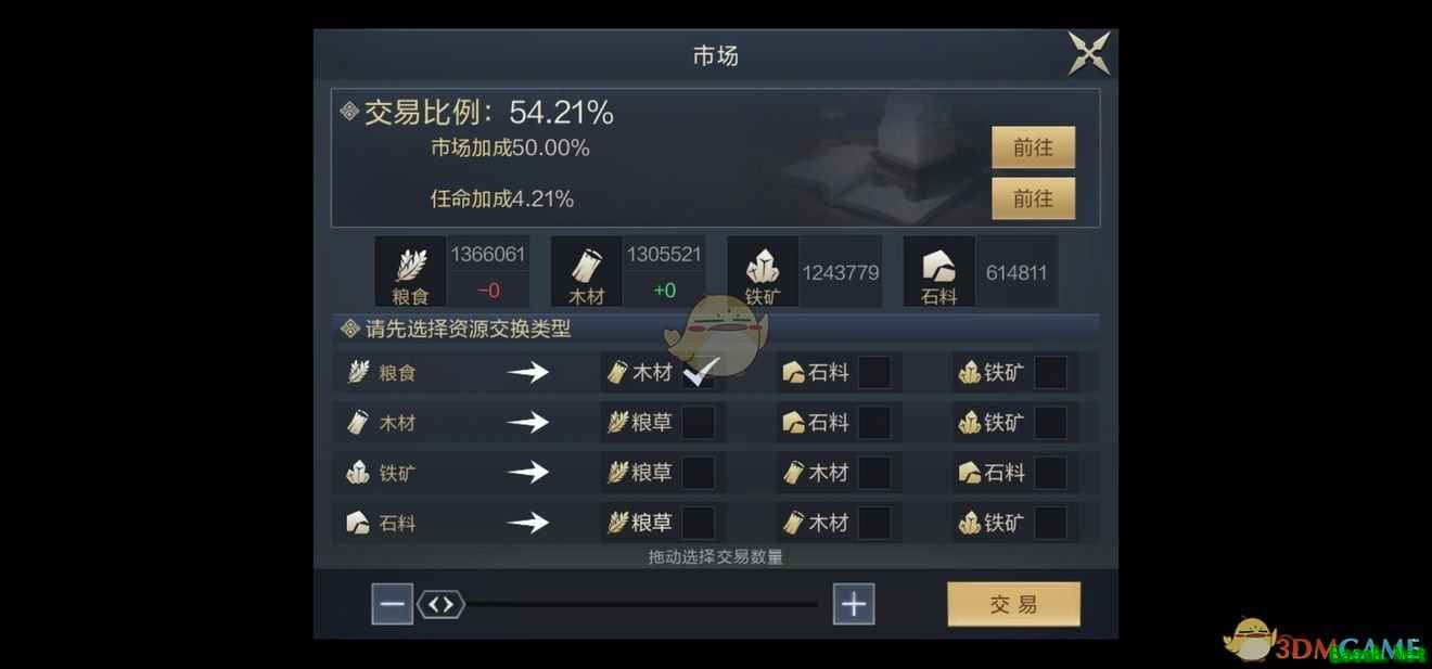 1、市场交易玩法在玩家的主公府8级后解锁,玩家可以在达到条件后通过建造市场参与交易玩法中。 2、市场中可以交易的材料有粮食、木材、铁矿、石料这些玩家前期发展必备的材料。 3、市场交易受到一定比例的限制,也就是说提升交易比例将获取更多的交易转化率。 4、玩家可以通过升级市场建筑和任命商贸官来提升这一比例。 以上就是本期关于《鸿图之下》市场交易玩法攻略的全部内容了,要想获取更多游戏资讯请点击关注易采游戏网。 本文内容来源于互联网,如有侵权请联系删除。 |