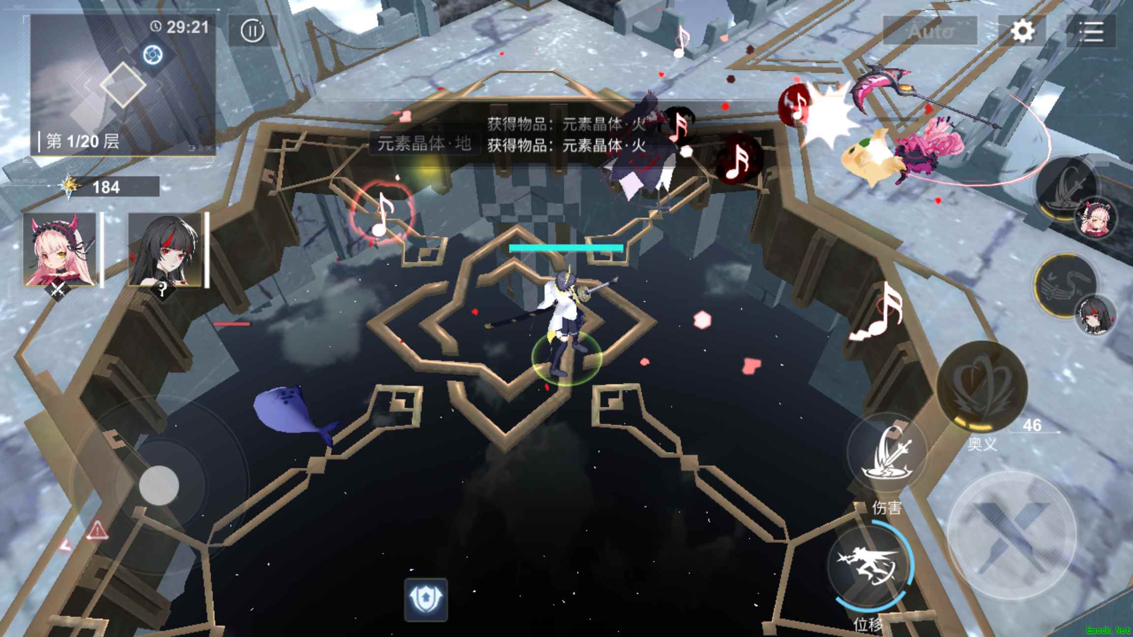 在关卡中,击败蚀兽会随机掉落“地”、“风”、“水”、“火”四个属性的元素晶体,触摸元素之章可以调和元素晶体,合成其他道具。
