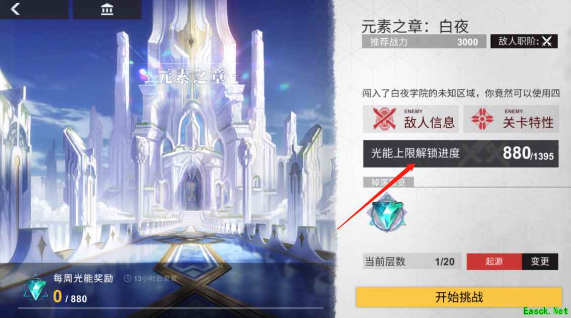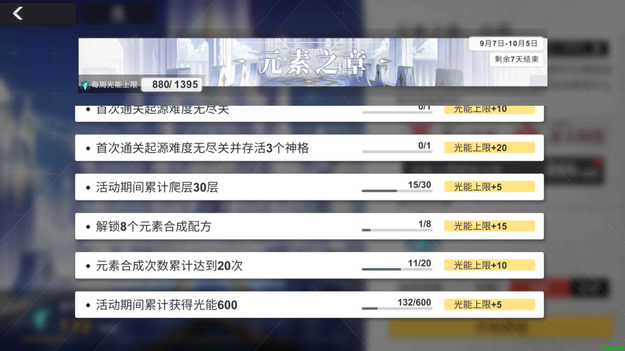 进入乌洛波洛斯关卡界面可以查看本周的光能奖励上限。光能奖励上限可以通过完成关卡任务进行提升,点击“光能上限解锁进度”,可以查看待完成的关卡任务。