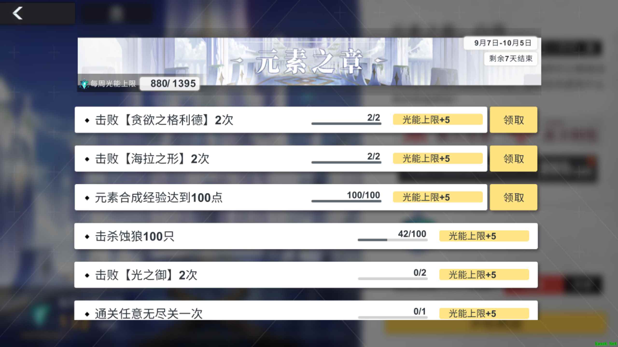 副本结束后解神者们可以看到光辉奖励,同时不要忘记领取进度任务中的光辉奖励哦!