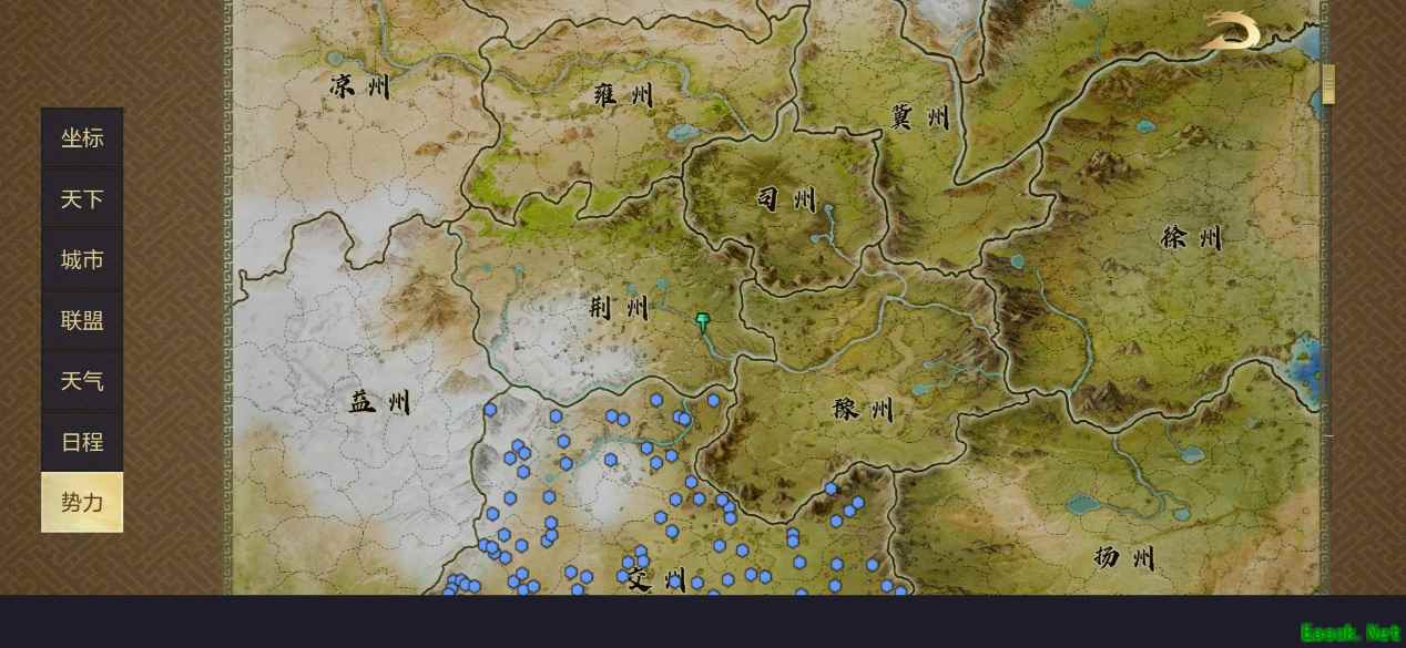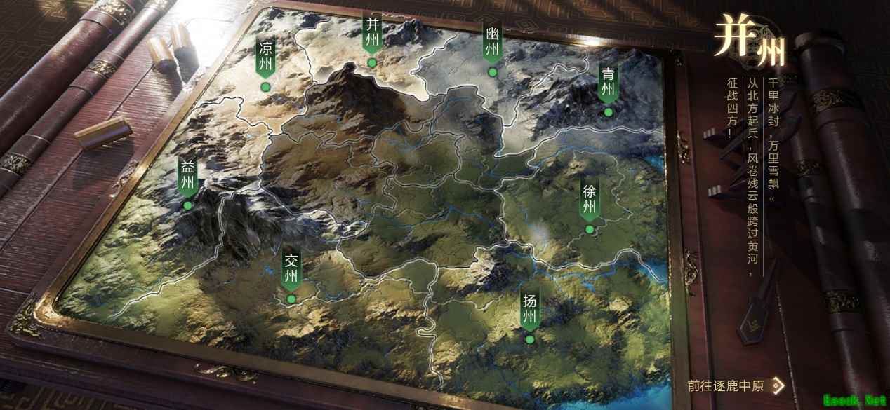 。 《鸿图之下》几乎照搬了三国的全部地貌,并将之细化分布,其中玩家可以选择八个州作为自己的起点,每一个州还有一段批语,概述其地势地貌,比如交州的批语是“水起沧澜,岭南巅。提三尺剑,扫蛮荒!”。三国时期最南部的交州就是一处偏远蛮荒的区域,后续才被吴国孙权吞并收复。 游戏中的细节并不止如此,不同的州中还有各种城市,城市的分布都参考了三国的历史与中国地形。这其中还有一个颇为有趣的小插曲,公测第一天我朋友与我一起入驻交州后,为了确认双方位置,截了显示自己要塞的缩放地图,而他看到缩放地图的城市后居然脱口而出,这交州是不是包括了越南。而交州确实就是西汉,汉武帝派兵剿灭南越国后设立的交趾刺史部,也就是如今越南河内西北,可见鸿图充分还原了历史地貌,