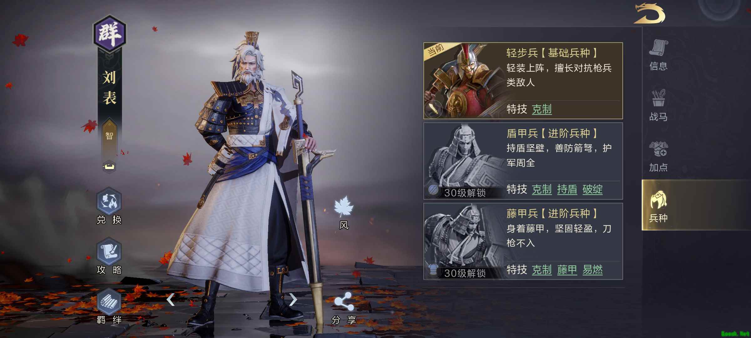 我以前玩骑砍的时候,就很喜欢研究各种兵种,你不知道按照兵种树解锁新兵种的时候有多快乐,我刚加完点之后,看到武将下面还有一个兵种界面,点进去一看发现等到30级之后就可以转职了,而且可以选择两种。就用我突破的刘表举例子吧:这个刘表呐,到了30级之后可以选择进阶成盾甲兵或者藤甲兵。这里需要取舍,两种职业都有利弊,比如盾甲兵优势的优势就是持盾,但是弱破绽。藤甲兵的优势就是藤甲,坏处大家玩三国的都知道的,就是易燃,怕火。这就很纠结了,到时候选的时候我肯定很纠结的。 兵种系统是真的很戳我的一点,不知道以后会不会有进一步的发展,能够开枝散叶,让这个系统更加的丰富一点,加强该系统的深度。 本文内容来源于互联网,如有侵权请联系删除。 |