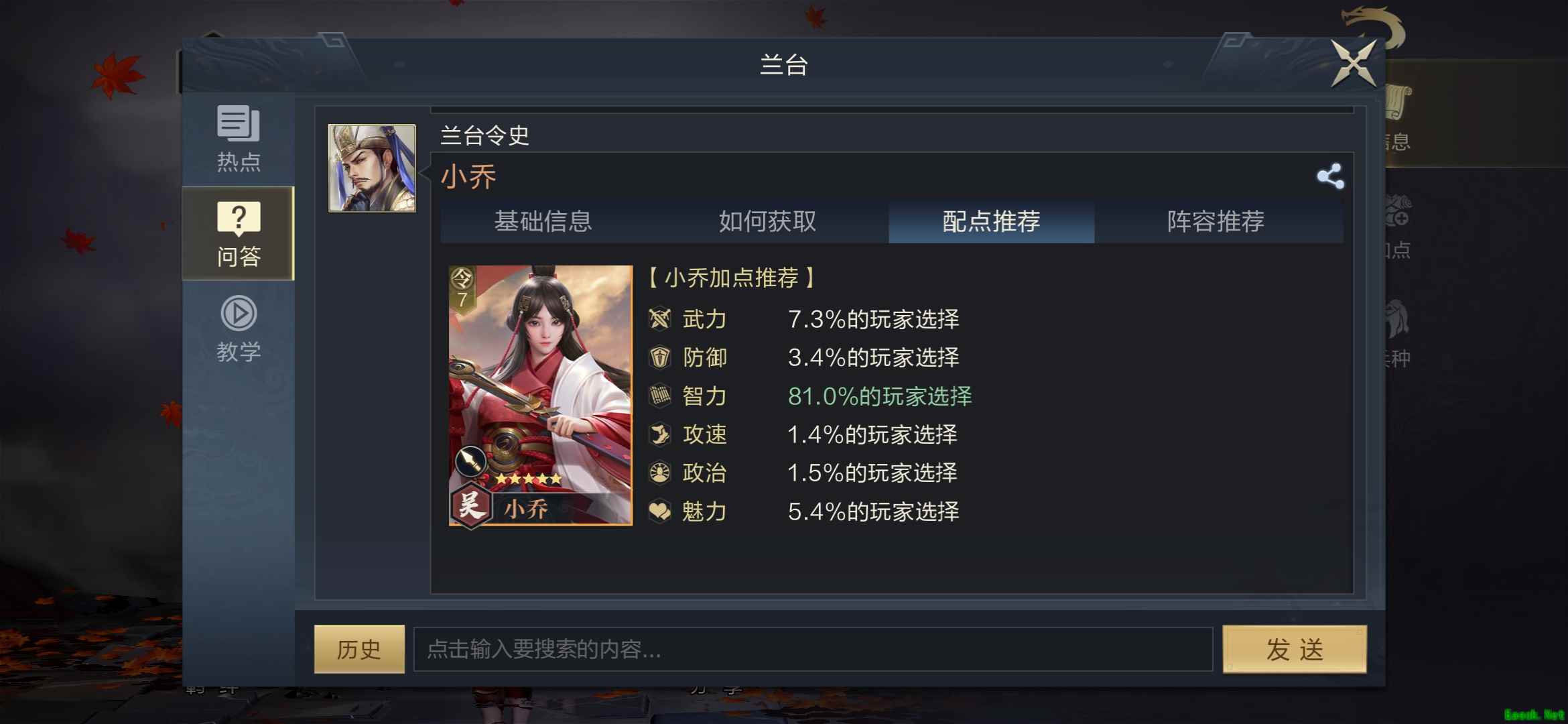 小乔的武力与智力相差无几,但作为双属性都比较不错的代价,却是小乔即使是五星武将,但属性反而低于其他五星武将,太过平均反而拖累了上限,其实如果是这样问题也不大,小乔均衡的属性也可以在队伍中作为副将登场,而且本身的定位就是辅助,给其他强势的武将打下手也是不错的选择,定位与属性契合度还是不错。