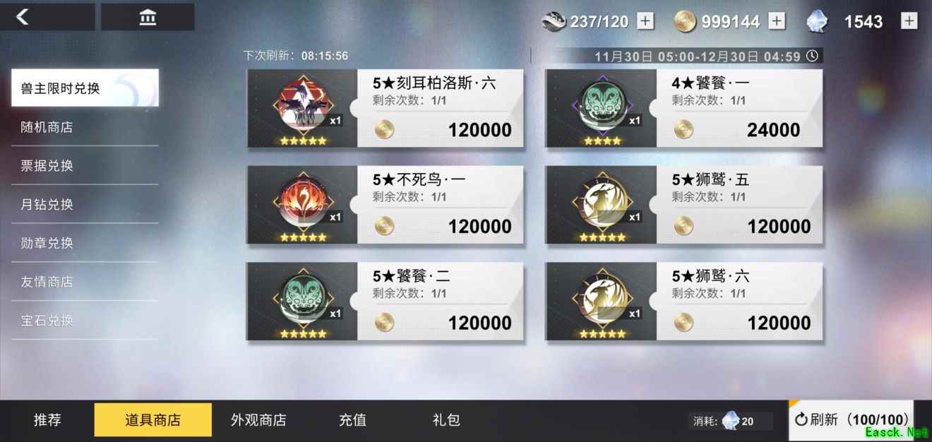 兽主限时兑换活动介绍: 活动时间: 2020年12月18日5:00-2021年1月4日5:00 活动介绍: 【白夜补给】道具商店将限时开放兽主兑换商店,想要提升兽主实力的解神者大人不要错过啦!
