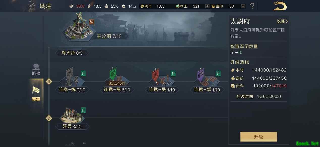 当然石料还会卡,但在开荒第一个4级石料资源地后,就可以分出一个军团去无脑采集了,只要不乱点科技,那么第一天升本大概率是不会卡的,而且不用担心采集收益也是可以超出资源上限的哦。 不过前期最难就是7级本,需要44w的石料,如果根据声望任务的进度,爆仓负担非常大,而玩家开荒给力到五级地还好,如果依然是四级地那就是需要购买将令采集了。 同时,采集也只是一部分,另一个核心的关键是赛季,赛季第二阶段的任务奖励资源就是石料,而消耗一枚将令完成一次赛季任务可以获得2w4的石料,任务上限为6级,前期发展这十万余的石料是必须入手的。