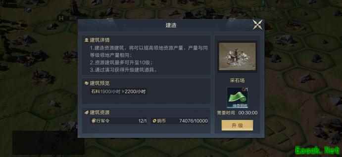 高级的资源地在攻占后,还可以演习,演习获得资源图纸可以提升其下一级资源变成资源建筑厂,这是一种永久提升资源地收益的方法,而建造的资源厂往后也可以靠着资源图纸步步升级。 比如五级石矿,在演习六级资源地(不限石矿,其他六级资源地也可)后,获得六级的资源图纸,通过行军令与铜币就可以将五级石矿升级成六级的采石场,六级的采石场产量等级与六级的石矿相同。 并且石矿变成采石场后还可以继续升级与采集,不过这样的资源建筑是数量限制的,只有通过提升声望才能增加上限。 本文内容来源于互联网,如有侵权请联系删除。 |