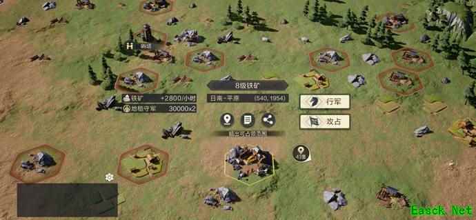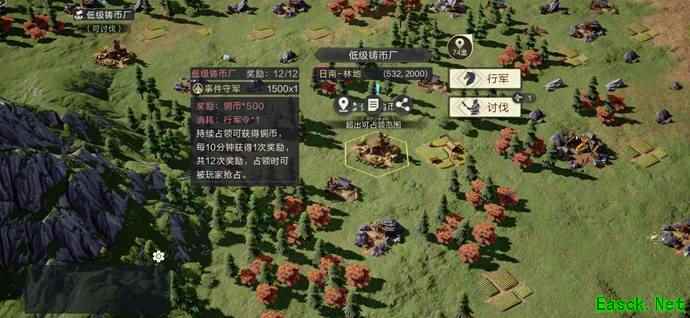 资源地最基础的就是不同类型的资源领地有着从低到高不同等级,对应等级也有对应的资源产出,而不同等级的资源地也有着不同强度的守军。 野外资源地中还有一种铜币资源地,那就是铸币厂,不过铸币厂并非攻占就算收益,还是类似采集玩法,要军团入驻才能获得产出,并在获得全部产出后会自动消失,是一种可消耗的资源地。