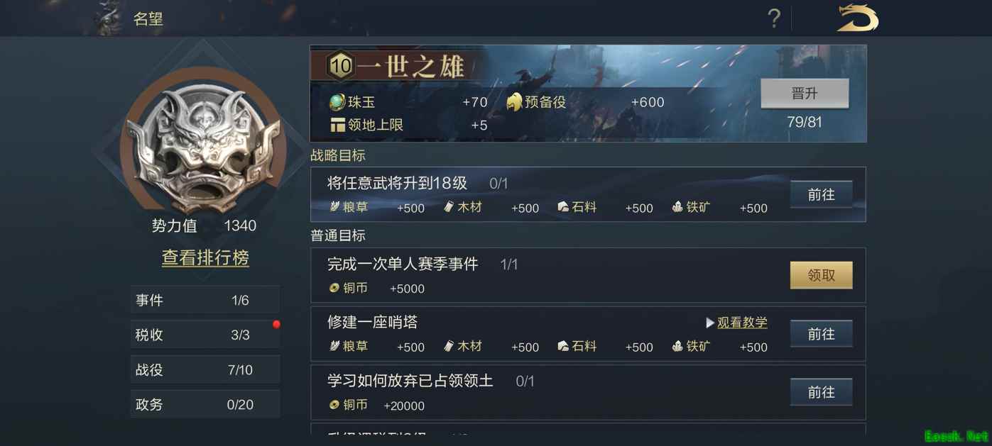 一开始说过,我是一个很少玩手游的玩家,因此对这种游戏还是比较难以上手的,新手教程完全帮助了我,不仅在游戏初期告诉我接下来该怎么做,每次有新的机制出现,都会在【名望】中有教程,循序渐进的教会我之后的步骤,并且在武将界面中,内置了许多攻略,让我在武将选择中,找到适合最适合他的技能和加点。 优秀的全面性