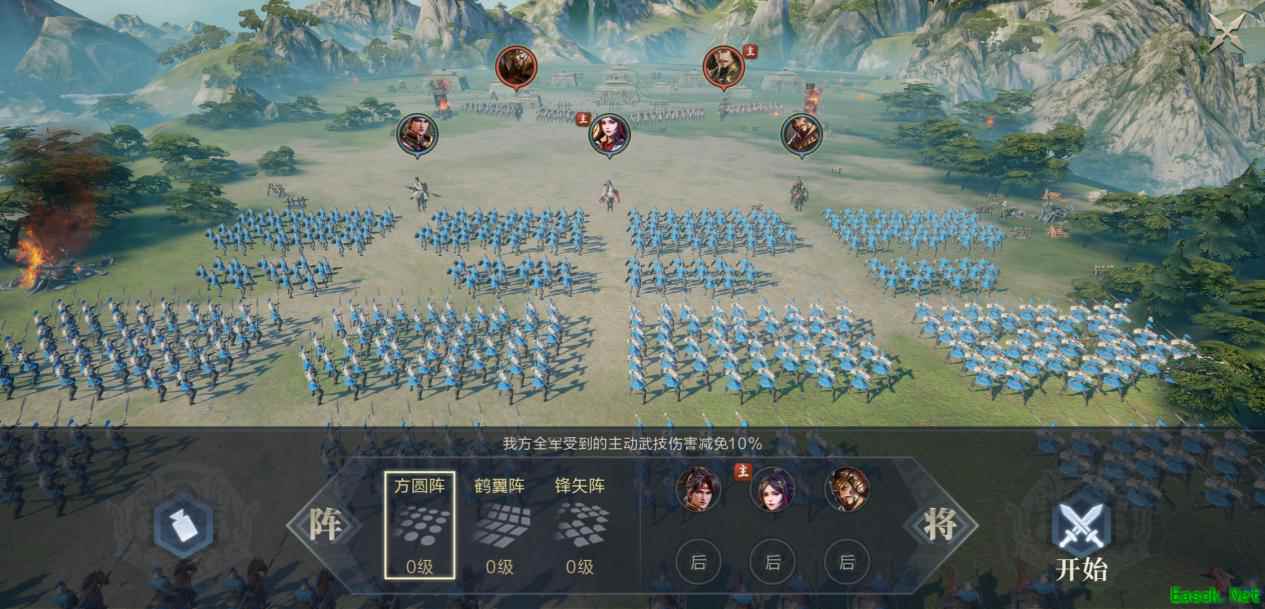 该作与虚幻4相得益彰的地方还体现在游戏的天气系统,这一点就考虑到了历史中两军对阵时候的各类因素了,游戏内也根据天气系统设计有不同的武将加成。这些武将与天气有关的技能也并非是无的放矢,最简单的例子就是诸葛亮。因为其有着借东风的典故,所以其技能在刮大风天气的时候自然就会有着优势。 与一般slg游戏不同的是,在战斗的过程中,游戏采用了即时制,这就让游戏的战斗不再单纯是纸面上的纯粹数值,而是完全可视化的。双方军容整齐,兵对兵,将对将,王对王,在精美的画面以及环境渲染下,战场的肃杀气息被很好的展现了出来,带来了极佳的代入感。策略玩家可以在战斗过程中直观的感受到战场各处的动向并做出调整。之前有提到该作是幻想画风,在战场中武将就拥有着能够扭转战场局势的技能,技能何时释放,在战场的何处释放,都成为了决定战场胜负天平上的砝码。