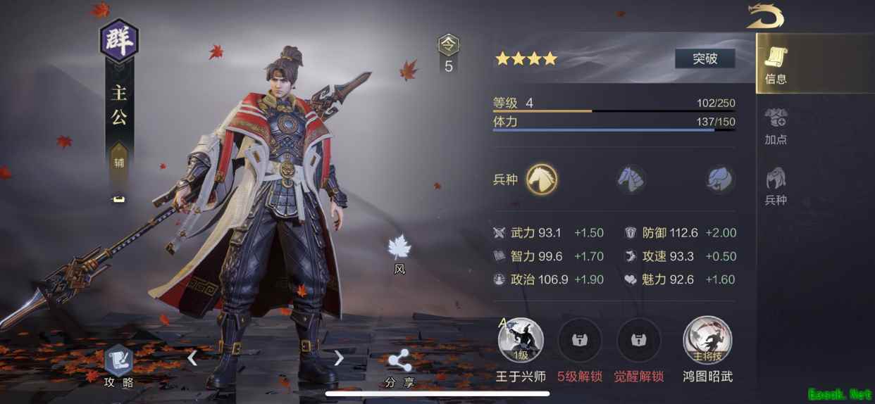 通过新手教程后,我发现游戏中不是只有三国英雄这么简单,还有主公也能征战,也就是我自己也是可以进行培养和上场战斗的,这就有了一种参与感,因为相对于别的游戏只能操控三国武将,而主公永远是那个坐在城池内提升官职,却不出战的那个,如果我的主公也是这样,那我早就另择明主了吧。