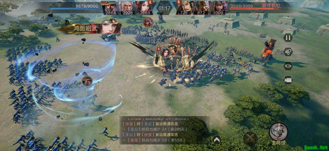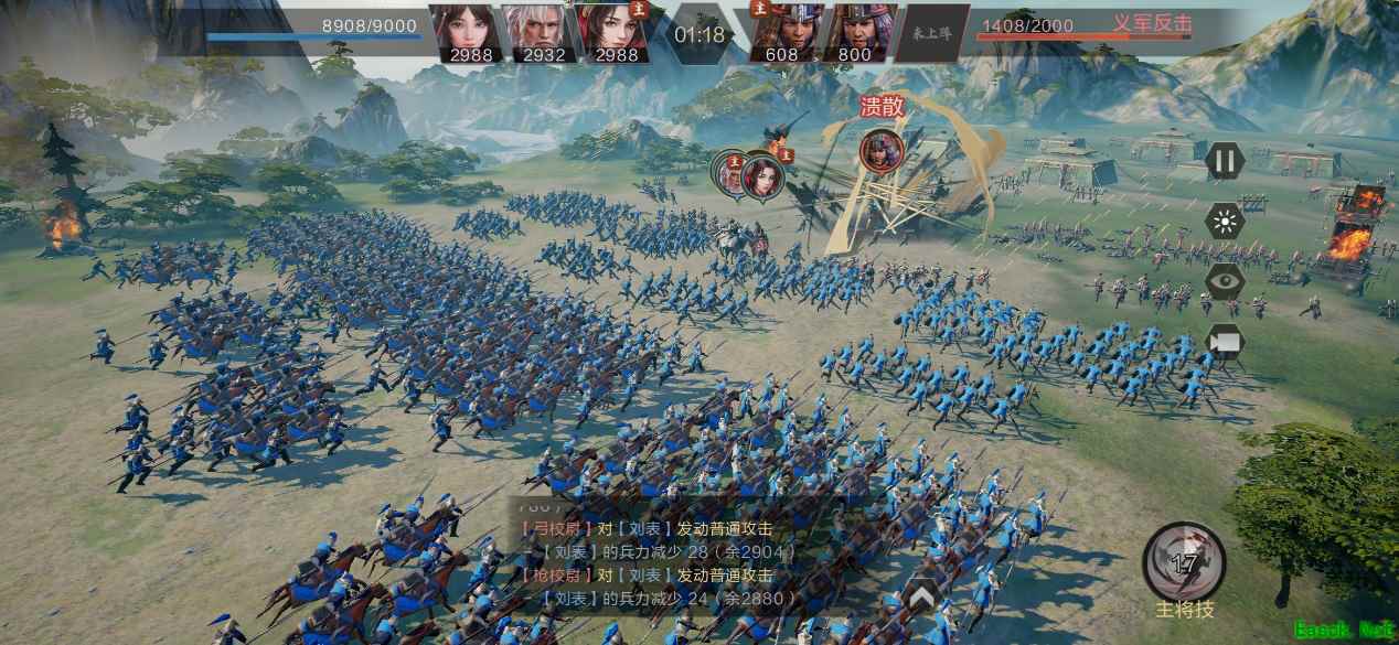 我个人是相当热衷SLG类游戏的,鸿图的表现完全满足了我的期待,特别是其战场冲锋的战斗场面,双方武将带着各自的骑兵或步兵冲锋战场,战场上双方兵力互拼画面都是动态演算,武将的技能还可以手动释放,技能画面表现力非常强,更有沉浸感。还可以调整各种角度观看,深得我心。